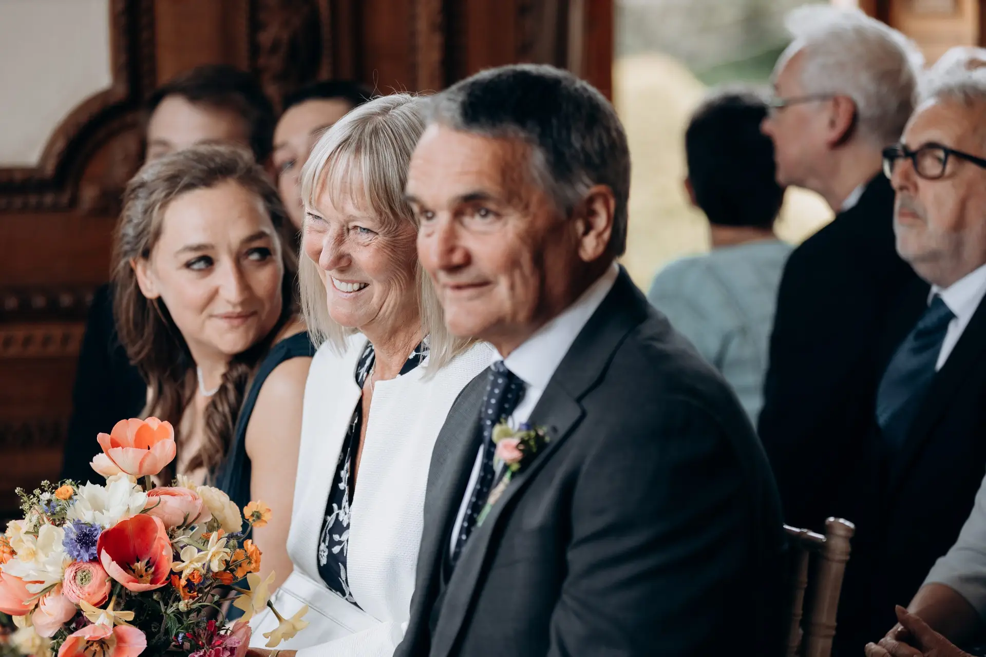 The ceremony took place in the elegant main hall, followed by an intimate apéro and meal inside the house. The atmosphere was warm, relaxed, and full of heartfelt moments.